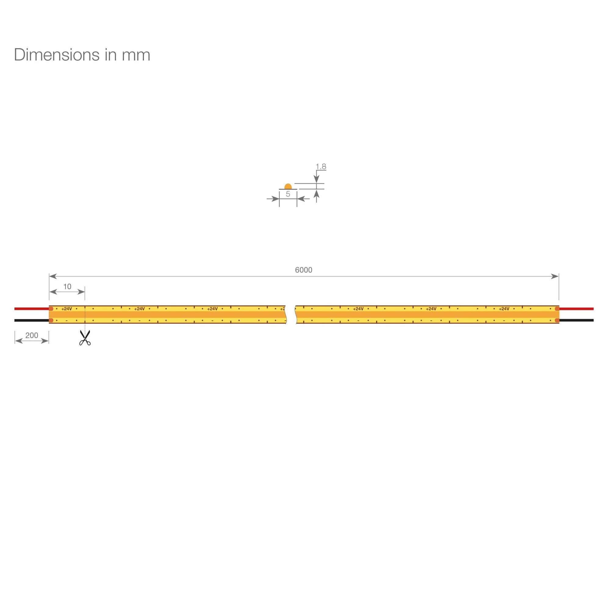 This strip is cuttable every 10mm (0.39"), allowing for precise customization without compromising performance. Even if it's cut in the wrong place, the small unlit section is unnoticeable once placed inside a profile with a cover.
